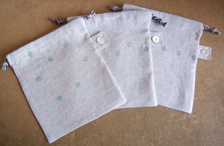 are they pouches or little bags? Dunno, they are little drawstring bags made with lovely linen rope, and of course my little tags.